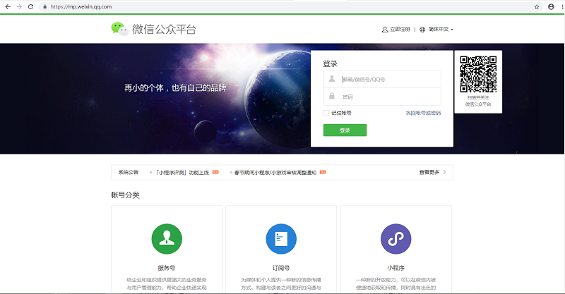 二、微网站绑定微信公众号 1. 在微信公众平台,输入微信公众号账号、密码,进入微信公众号后台。微信公众平台链接:https://mp.weixin.qq.com/