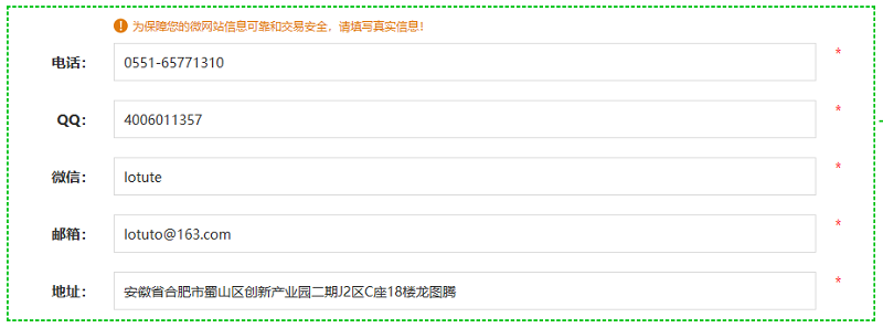 C:填写联系方式:填写电话、QQ、微信、邮箱、地址。联系方式均为必填项。如下图: