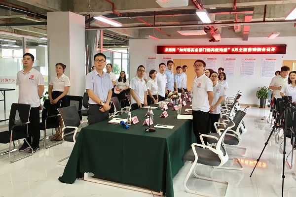 “如何落实各部门的高效沟通” 8月主题营销例会现场 此次营销例会由人事总监赵萍主持,围绕主题“如何落实各部门的高效沟通”而展开。在先后颁发了7月份的业绩团队冠军和个人冠军后,关于业务部门与各部门之间遇到的各种阻碍问题,会议上各业务小组经理做了积极汇报,随后各部门负责人发言,详细阐述了其部门对业务工作的支持举措并针对会议主题发表意见和想法。总经理刘光、顾问朱碧波对汇报人员进行指导,并给予合理建议和解决方法。