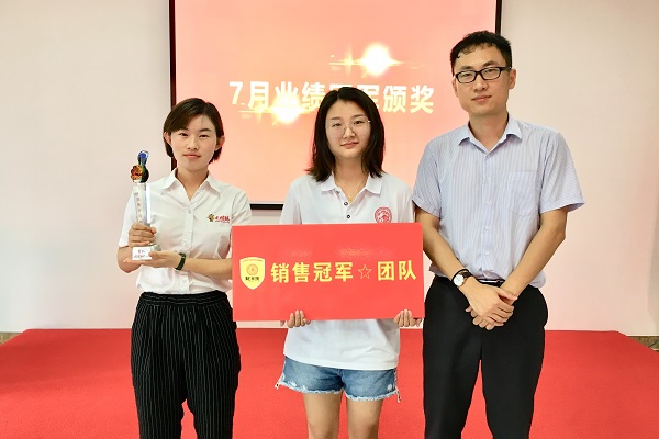 龙图腾业务部七月销售冠军——团队 此次7月销售冠军团队由业务一部一组蝉联,业务一部三组李伟荣获销售冠军个人。朱总为7月销售冠军团队和销售冠军个人颁发了奖杯和奖牌。作为业务一部三组小组经理,李伟坦言今后将加强员工的基础业务知识同时分析业务模式,继而更好的拓展业务。并针对专利管理系统的开发和完善提出先讨论后优化的建议,希望客户在使用我们的系统时更方便、快捷。
