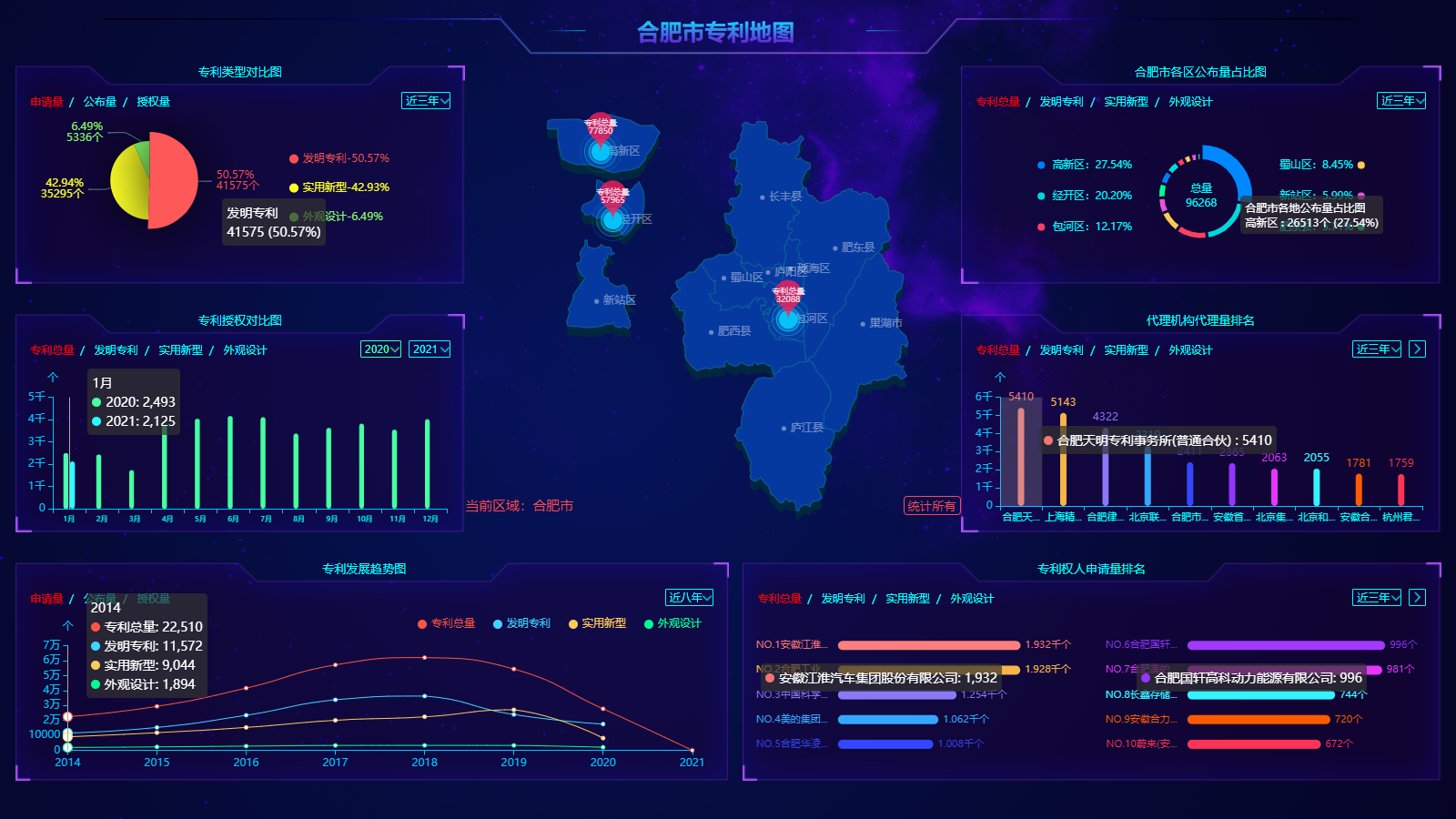 一、专利地图 专利地图从专利类型、授权等多个维度对区域数据进行监测。通过监测图表,快速get整个区域和各个子区域的专利状况,预测未来专利发展趋势,增强区域竞争力。
