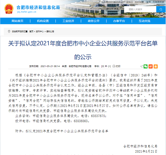 近日,合肥市经济和信息化局公示了2021年度合肥市中小企业公共服务示范平台名单,凭借扎实的服务内容和优秀的服务成果,合肥智慧龙图腾知识产权股份有限公司获此殊荣!