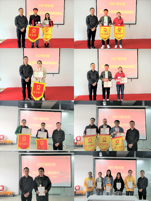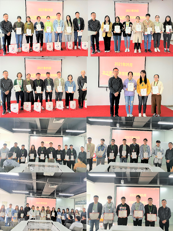 紧接着刘总为获得龙图腾公司9月份优秀管理奖及创新奖的人员颁发荣誉证书及奖品,并合影留念。