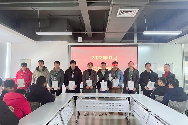 买专利卖专利找龙图腾,真高效! 查专利查商标用IPTOP,全免费!专利年费监控用IP管家,真方便! 为鼓励在工作中成绩优异、工作表现突出、辛勤努力的优秀员工及优秀团队,2月21日上午,龙图腾公司2022年01月份龙之星颁奖典礼分别在高新区和蜀山区办公室举行,公司董事长刘光、各部门负责人及全体员工参加了颁奖典礼。